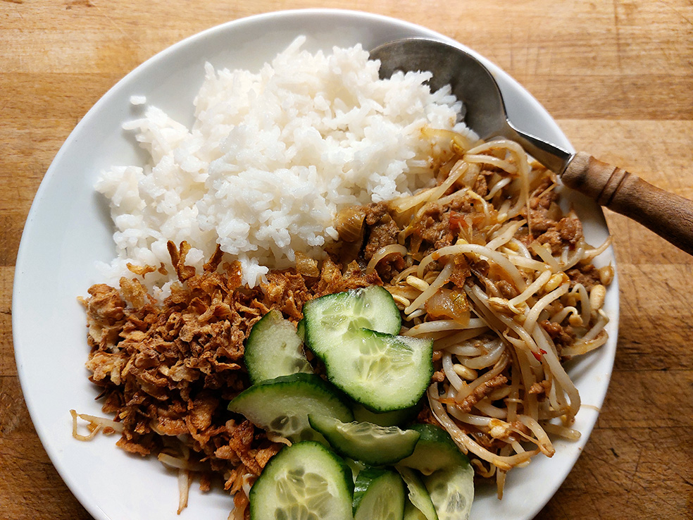 - Voeg na de bereiding geroosterde kokosvlokken toe.