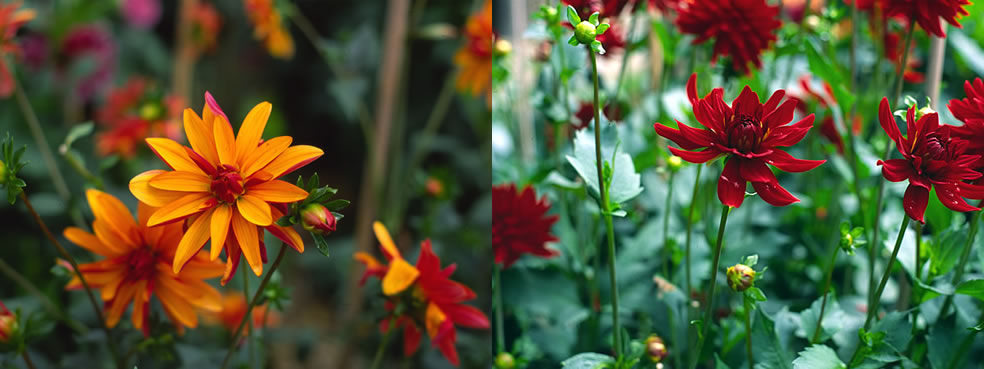 Voor de dahlia’s in mijn moestuin ben ik op zoek naar een combinatie van bloemvormen en kleuren, in zwartrood, rood, oranje en roze. De planten moeten er goed uit zien, groeikrachtig zijn en goed doorbloeien. De hoogte varieert van 80 tot 100 centimeter. Wat niet genoeg bevalt gaat er uit en wordt vervangen: